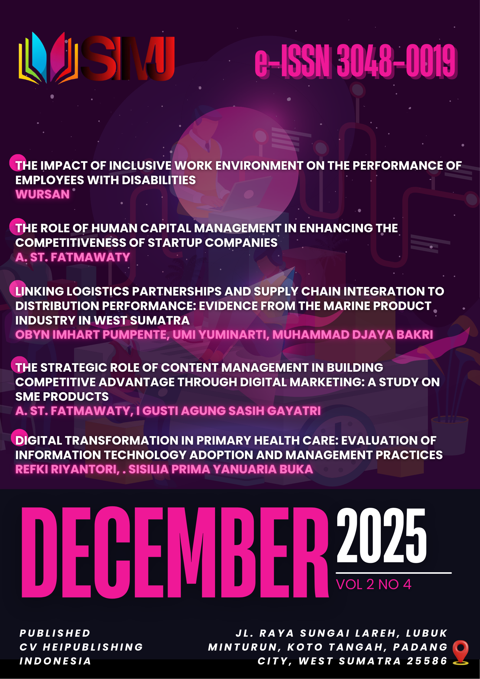 This volume consists of 5 articles with 11 authors from 6 universities in Indonesia, namely Sahid University of Jakarta and Muhammadiyah, Institute of Science and Business Technology Selayar, Universitas Islam Negeri Bukittinggi, Universitas Putra Indonesia “YPTK” Padang, Univesitas Negeri Padang, Universitas Telkom